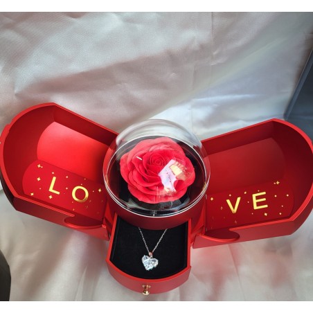 SCATOLA CHE SI APRE A FIORE CONTENENTE UNA COLLANA CON UNA BELLISIMA SCRITTA D'AMORE